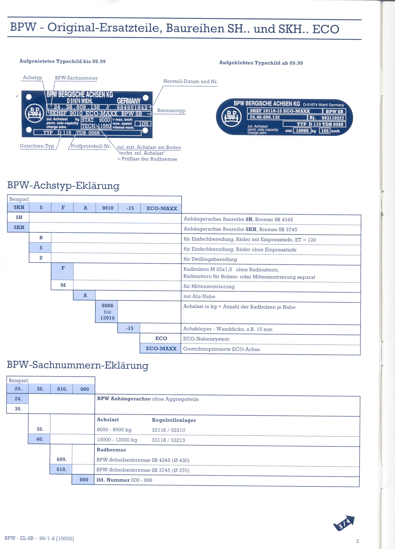 BPW Zajištění a prodej originálních náhradních dílů dle identifikačních znaků na nápravnici dle přiloženého návodu Typový štítek BPW náprav